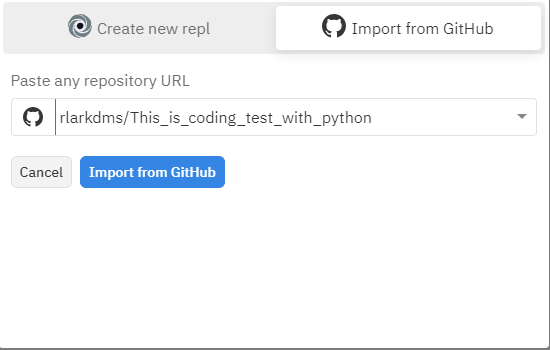 나는 github에서 내가 만든 Repo을 골랐다. 그러고 나서 import from Github을 하면 환경설정이 끝난다 완벽!