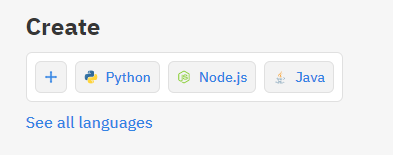 create에서 자기가 사용할 언어를 고르거나 '+'을 누르고 자기가 사용할 서비스를 누르면 된다.