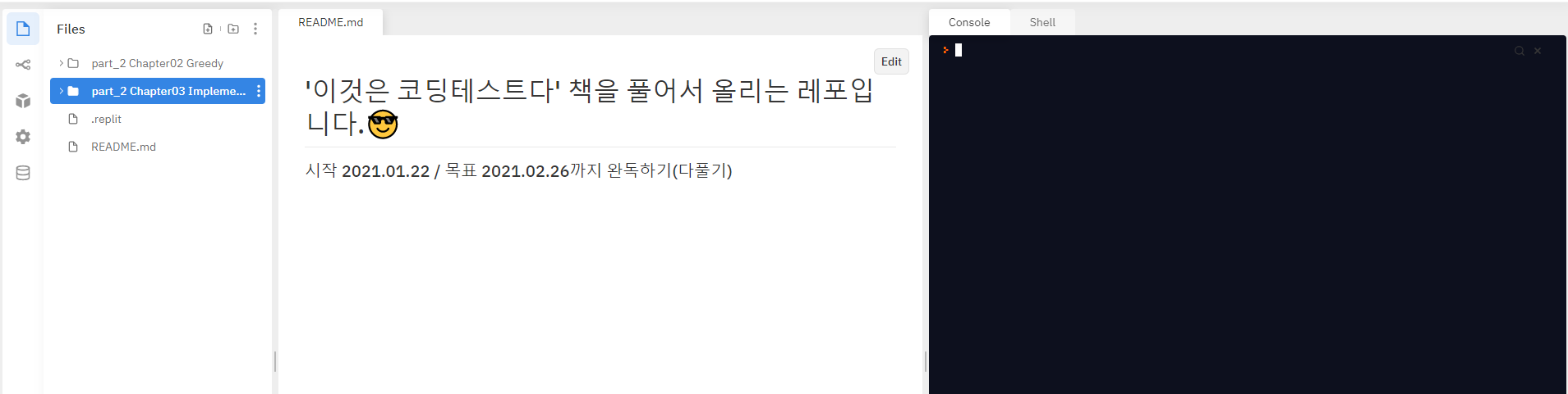 ... 공부가 힘들던 와중에 책에 나와있는 online IDE인 repl.it을 보고 깜놀했다.