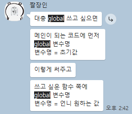 코딩한 함수에 전역변수가 들어갔는데 값이 바뀌지 않는 문제가 발생하였고